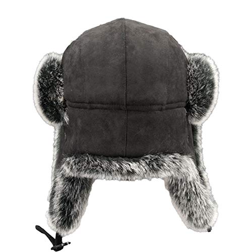 Insun Unisex Cappello Aviatore Pelle Scamosciata Cappello Invernale Ushanka Cosacco in Finta Pelliccia Nero XXL