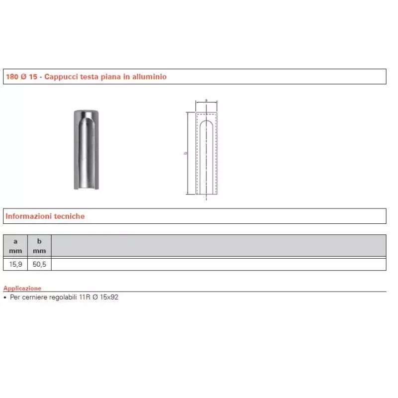 Cappuccio in alluminio per cerniera anuba regolabile SFS art.11R diametro mm.15 altezza mm.50 finitura cromato opaco. NB: NON COMPATIBILE CON CERNIERE DI MARCA DIVERSA !!