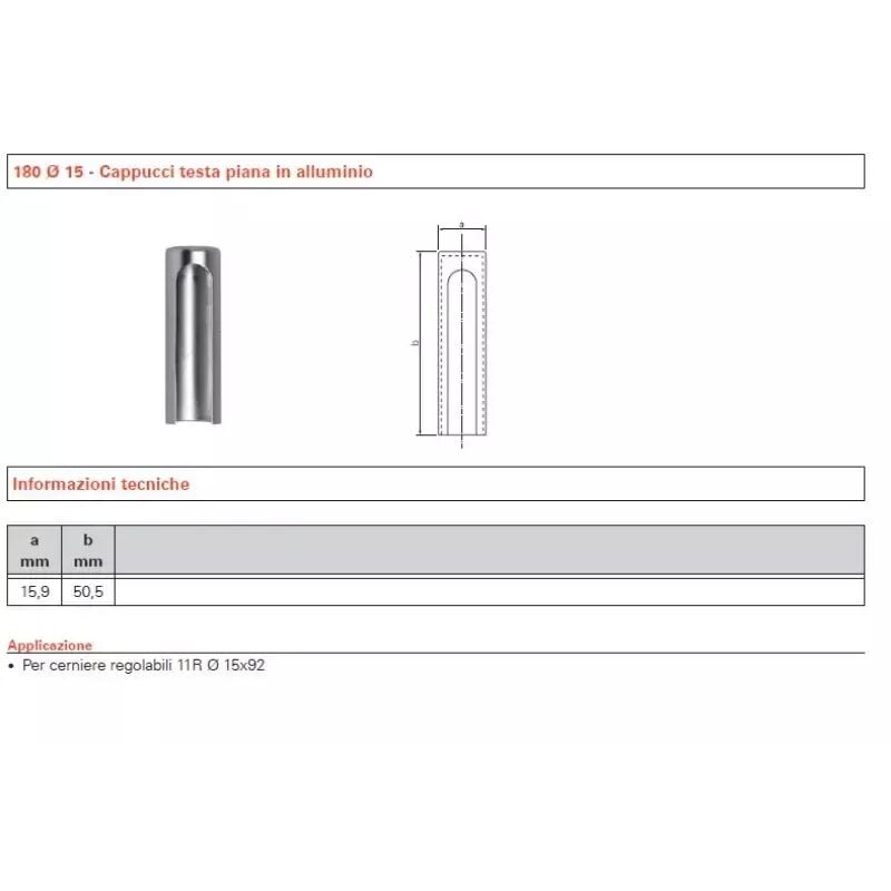 Cappuccio in alluminio per cerniera anuba regolabile SFS art.11R diametro mm.15 altezza mm.50 finitura ottonato. NB: NON COMPATIBILE CON CERNIERE DI MARCA DIVERSA !!
