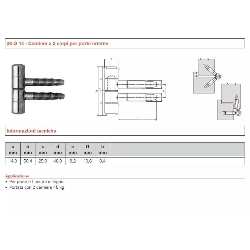 Cerniera anuba a 2 gambi per porte e finestre in legno con installazione a filo o a battente. Cerniera in acciaio finitura bianco avorio, disponibile nel seguente diametro: 14 mm.