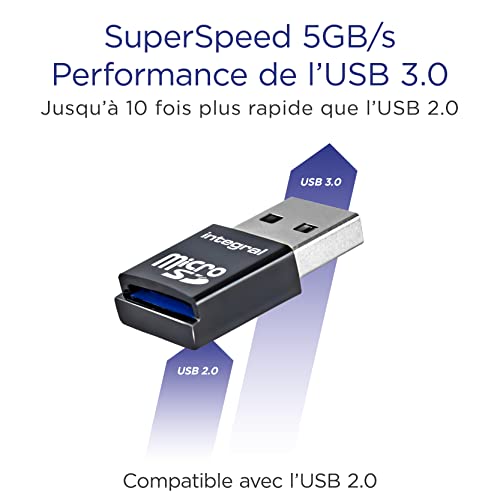 Integral Adattatore per lettore di schede di memoria Micro SD USB3.0 - fino a 180 MB/s in lettura e 130 MB/s velocità di scrittura, compatto e ultra sottile e compatibile con micro SD, microSDHC e