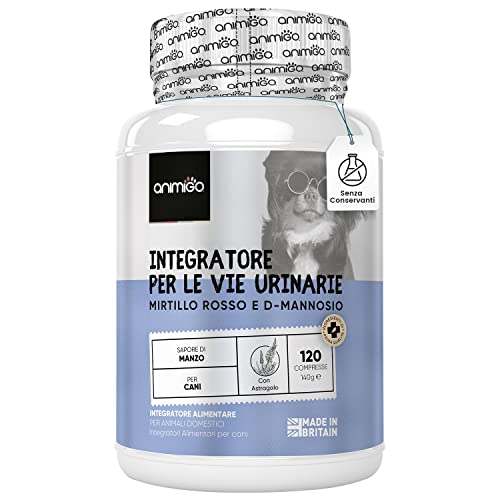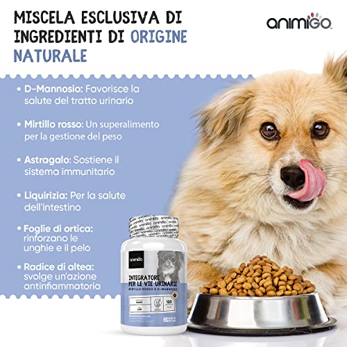 Integratori per Cani in 120 Compresse - Supporto delle Vie Urinarie e del Sistema Immunitario - con Mirtilli Rossi, D Mannosio, Astragalo, Liquirizia, Altea e Ortica - Integratore Cane al Gusto Manzo