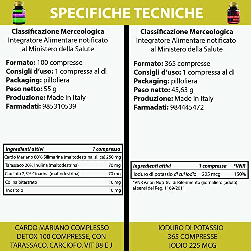Set di integratori depurativo + metabolismo e tiroide | cardo mariano complesso detox 100 compresse + ioduro di potassio 365 compresse | senza glutine e lattosio | non di origine animale