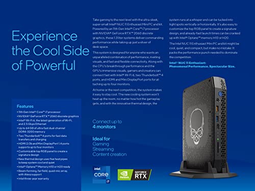 Intel NUC 11 Enthusiast Kit NUC11PHKi7C Phantom Canyon Home & Business Mini PC Mini Desktop 11a generazione Intel Core i7-1165G7 fino a 4,7 GHz, grafica RTX 2060 (16G RAM 512G SSD)