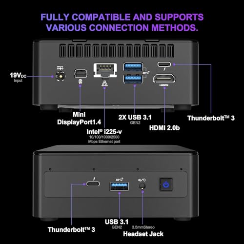 Maggiore capacità e supporto per l'espansione della memoria: Il mini PC NUC11PAHi5 è dotato di DDR4 3200 Ram a due canali da 16 GB (2 x 8 GB) (supporta fino a 64 GB) e l'SSD da 512 GB offre ampio spazio di archiviazione. Inoltre, lo spazio su disco può essere espanso. SSD o HDD SATA espandibile da 2,5" (non incluso).