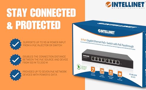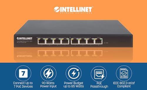 Intellinet 561679 Switch Poe+ Gigabit Ethernet a 8 Porte con passthrough Poe Nero