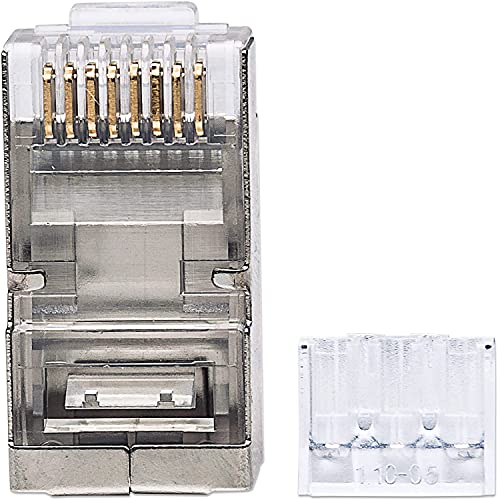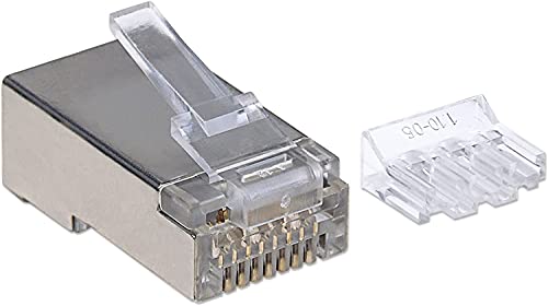 Intellinet 790505 Connettore modulare Pro Line Cat6A RJ45, Set da 70pz STP, 3 poli, sia per cavo rigido che flessibile, barattolo da 70 plug, Grigio
