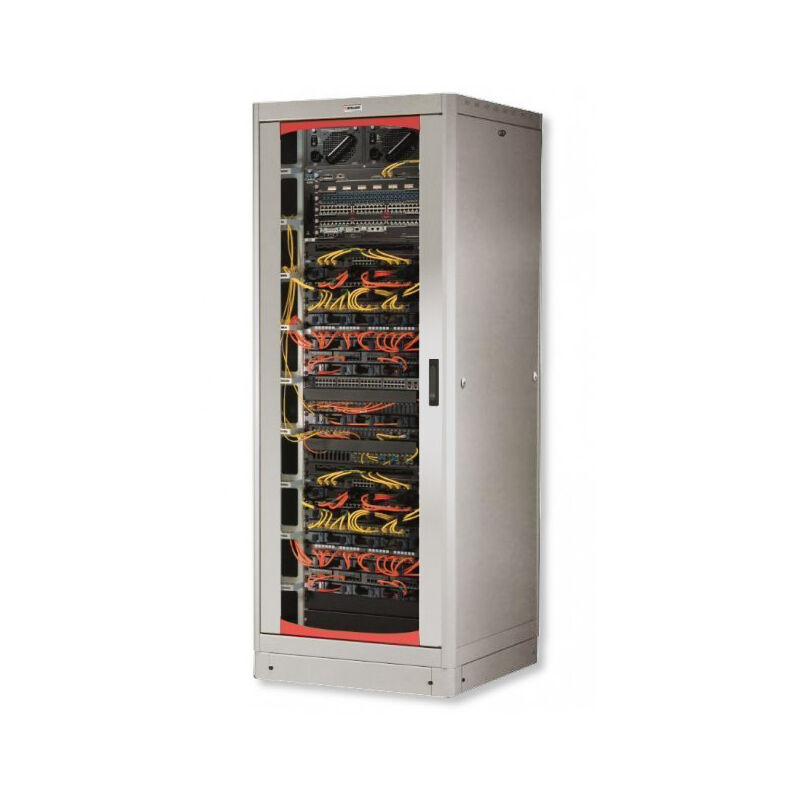 Solido armadio rack a pavimento caratterizzato da una struttura solida e robusta con montanti 19 da 2 mm di spessore e angolari innovativi da 3 mm di spessore. Alla robustezza della struttura si unisce il design innovativo e moderno, che non trascura la praticità nell installazione. Infatti, utilizzando una semplice chiave, l'armadio può essere montato e smontato facilmente, permettendo quindi di effettuare un'installazione veloce. Questa rapidità di montaggio è garantita dalle cerniere a sgancio rapido presenti sulla porta anteriore e dalle serrature a chiave presenti sui pannelli. Altre caratteristiche fondamentali come la porta reversibile, i pannelli laterali e posteriori amovibili, la doppia coppia di montanti numerati, il fondo che a discrezione più essere mantenuto chiuso o aperto per favorire il ricircolo d'aria, rendono, insieme all ampia gamma di accessori proposti, questi armadi in grado di soddisfare tutte le esigenze di installazione. Caratteristiche · Pannelli e porta