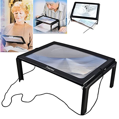 A4 intera lettura Magnifier mani libere ingrandimento 3x per la lettura con 4 luci LED - flip out Gambe in piedi sopra documento - Viene fornito con tracolla