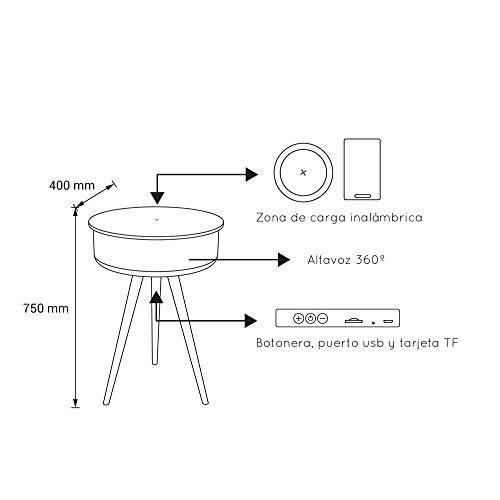 Interbox Tavolo altoparlante Bluetooth con ricarica wireless, tavolino ausiliario in legno portatile e intelligente, base di ricarica, porta USB e scheda TF