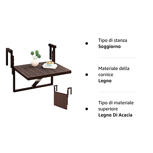 INTERBUILD Toronto balcone pieghevole tavolo ponte regolabile FSC legno di acacia espresso colore 70 x 60 CM
