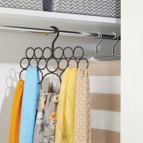 Questo organizer per armadi e guardaroba è dotato di 18 anelli per sistemare sciarpe, foulard, cravatte, cinture e molto altro.