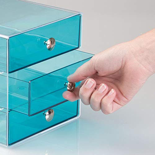 InterDesign Drawers | Contenitore a scomparti con 3 cassetti | Mini cassettiera Portagioielli e make-up | pratico Organizer ufficio | Plastica - blu acqua