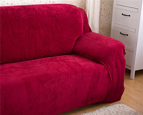Interestmaker, copridivano elasticizzato in velluto per divano da 1, 2, 3, 4 posti, rosso vivo, 3 Seater:195-230cm