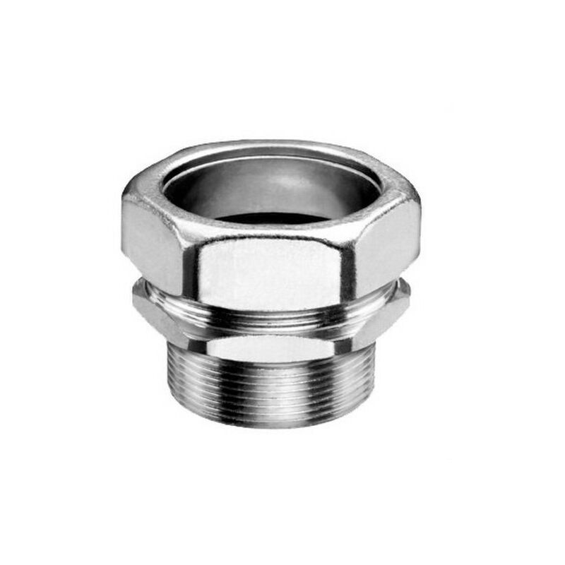 Raccordo autobloccante a sgancio rapido con continuità di massa, filettatura maschio metrica EN60423, grado di protezione fino a IP67, realizzato in ottone nichelato. M25x1,5.