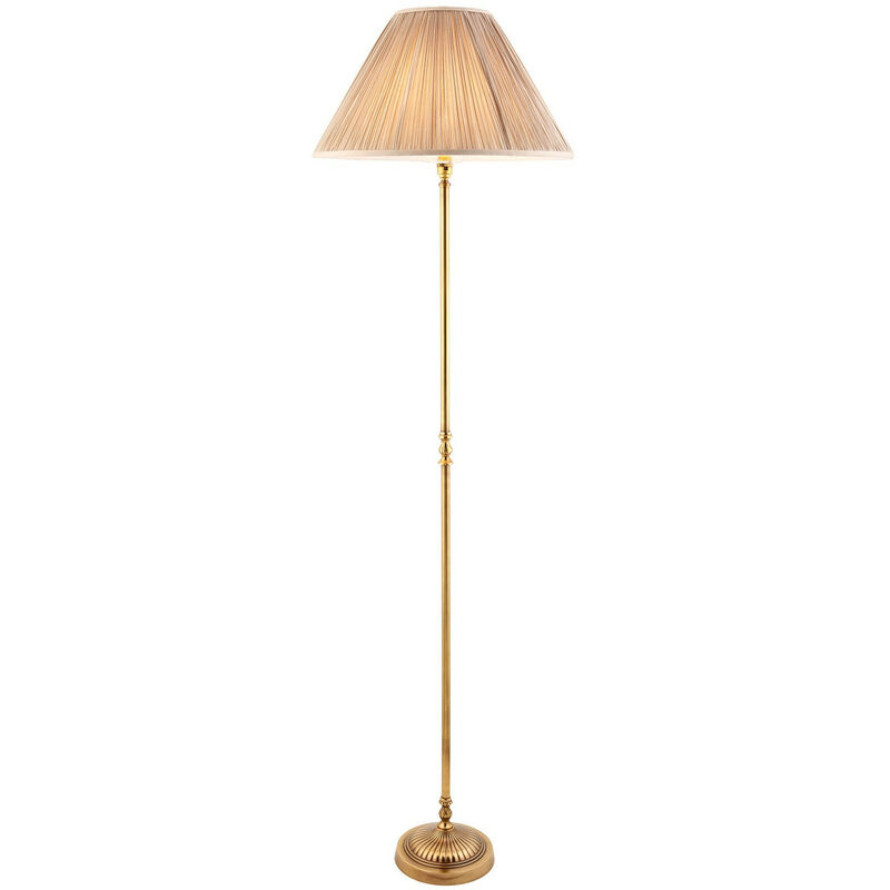 Interiors Fitzroy - Lampada da terra a 1 luce in ottone con paralume beige, B22 | Finitura: ottone | Classificazione IP: IP20 | Altezza (cm): 174,5 | Diametro (cm): 51 | Numero di luci: 1 | Tipo di lampada: B22 | Lampadina: incandescente | Potenza (max): 60 | Paralume: tessuto beige | Classe: 2 (doppio isolamento) | Lampadina inclusa: no