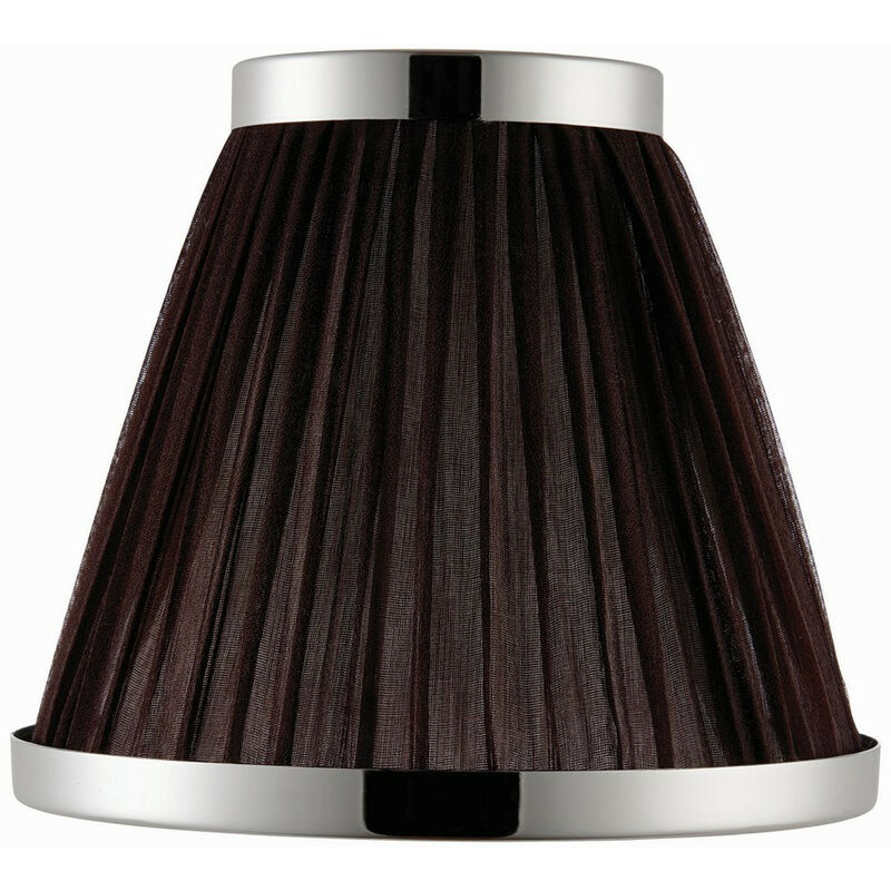 Interiors - Paralume sei pollici cioccolato e nichel, E14 | Finitura: nichel lucido, tessuto cioccolato | Classificazione IP: IP20 | Altezza (cm): 13,5 | Diametro paralume (cm): 15 | Numero di luci: 1 | Tipo di lampada: E14 | Lampadina: incandescente | Potenza (max): 40