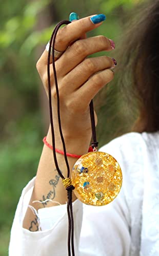 Ciondolo Chakra Metatron in organo citrino a getto tondo 2 pollici circa Protezione EMF Guarigione Prosperità energetica. Questa è un'opera d'arte meravigliosa che dà molta Forza, Potenza, Pace Mentale, Divinazione a chiunque la indossi. Si noti che, poiché tutti i nostri prodotti sono realizzati e scolpiti a mano, esiste una leggera deviazione in termini di dimensioni, forma, colore e aspetto rispetto all'immagine mostrata qui;