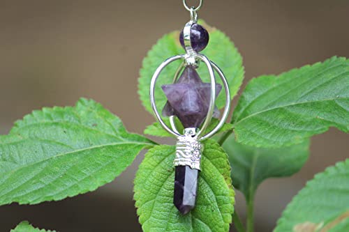 Jet International Pendolo di Merkaba con ametista energizzante, intagliato, guarigione, intagliato, Reiki A + Opuscolo L'immagine è SOLO un riferimento