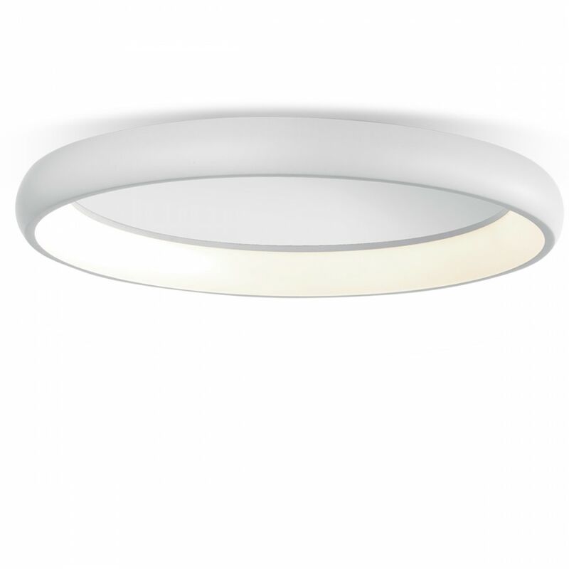 Plafoniera semplice e geometrica nella forma. Ancora una volta l'estrema essenzialità illumina e arreda senza appesantire l'arredamento. Una lampada da soffitto adatta per qualsiasi stanza e su qualsiasi tipo di arredamento. Plafoniera led Pan International CORONA GRF02311 Lampada da soffitto a led 80W, 3000°K Corona GRF02311 è provvista di un modulo led integrato da 80W con tonalità di luce calda (3000°K). Corona GRF02311 ha un peso di 6.4 Kg. Corona è realizzata in alluminio verniciato bianco opaco ed è dotata di schermo diffondente in PMMA che permette di ottenere effetti di luce morbida e diffusa. La curvatura del corpo in alluminio si abbina perfettamente alla curvatura dello schermo interno in PMMA per realizzare un'unica forma dal design morbido e contemporaneo. La sorgente SMD LED ad alta efficienza è alimentata dal driver integrato nell'apparecchio e può essere On/Off o dimmerabile a richiesta. Illuminazione diffusa. Corona GRF02311 misura un diametro di 81 cm per una