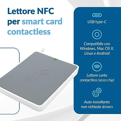 Internavigare uTrust 3700F - USB-C - Lettore RFID e NFC per Carta d'identità Elettronica CIE 3.0 per accedere a ANPR, INPS, INAIL, Agenzia Entrate e siti della P.A.