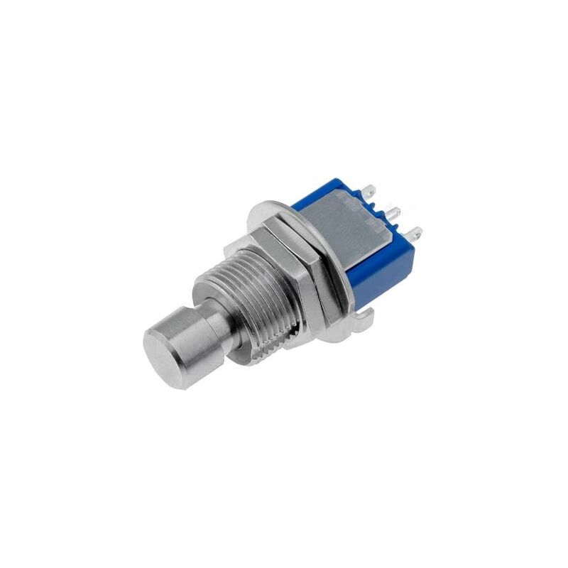 Interruttore resistente agli atti vandalici. Posizioni: 2, 1 stabile Configurazione dei contatti: SPDT, 3A/250Vac, 4A/30Vdc Contatti: Saldare Modalità di funzionamento: ON-(ON) Dimensione del foro di montaggio: 12,5mm Forma del pulsante: in uscita IP40 Vita elettrica: 30.000 cicli