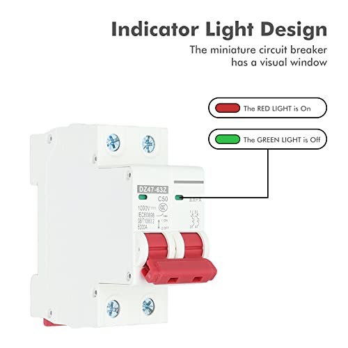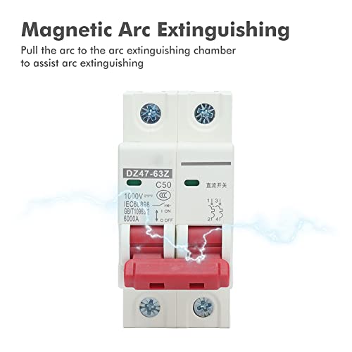 Interruttore Automatico Miniaturizzato DC, 2 Poli 1000V Isolatore per Sistema Solare Fotovoltaico Montaggio Su Guida DIN Sezionatore CC Interruttore Automatico Bassa Tensione DZ47‑63Z (50A)