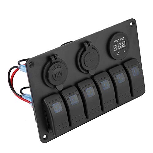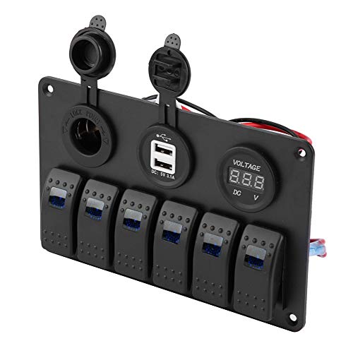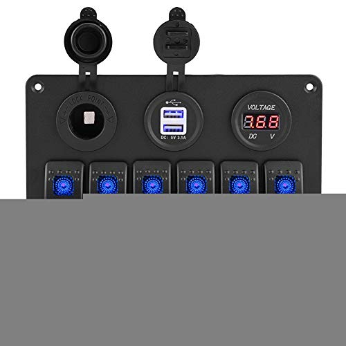 Interruttore a bilanciere, 12V 24V 6 Gang Car Boat Marine LED Interruttore a bilanciere Pannello Doppio USB Voltmetro Accendisigari(Blude)