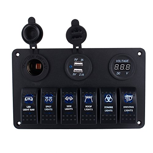 Interruttore a bilanciere pannello, 6 Gang DC 12 V/24 V circuito LED impermeabile per auto barca marina con 6 interruttore a bilanciere fusibile di sovraccarico con USB ricaricabile (6 interruttori)