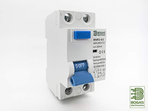 Interruttore differenziale 40 A o 63 A, 30 mA. Classe AC 2P (Neutro-Fase).