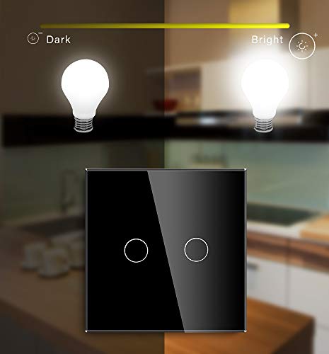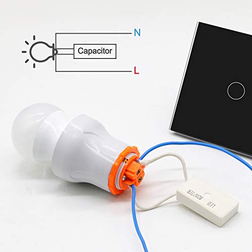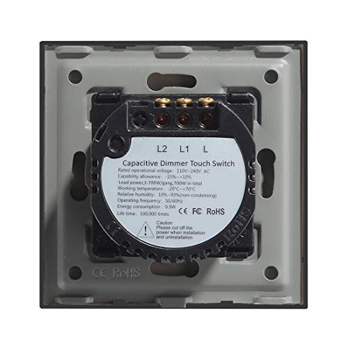 Interruttore elettronico touch, dimmerabile, compatibile con lampade a LED, colore bianco, in vetro, a una via, Nero