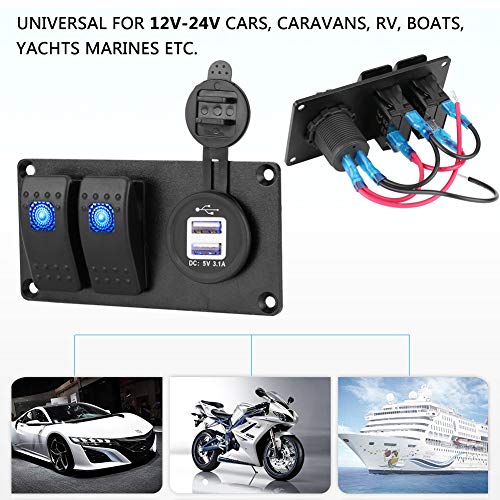 Interruttore a levetta, 2 pulsanti 12-24 V blu LED Pannello interruttore a bilanciere con doppia porta USB 3.1A per camper nautico per auto