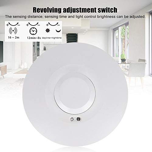 Interruttore del sensore di movimento: Questo interruttore del sensore a soffitto è un modulo mobile a induzione a microonde da 5,8 GHz, che può rilevare efcemente gli oggetti che si muovono induttivamente. Il fotodiodo integrato impedisce al sensore di funzionare durante il giorno (puoi anche regolarlo per funzionare durante il giorno).