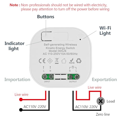 Lunga distanza del telecomando: Con una distanza massima di controllo di 100 metri, il nostro interruttore autogenerante del telecomando wireless ti offre la comodità di controllare le luci anche da lontano. Si prega di notare che muri e ostacoli potrebbero influenzare la distanza. Prima dell'installazione, si consiglia di verificare la posizione migliore per la ricezione/trasmissione dei segnali.