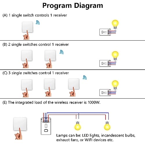 Facile da installare: cablato il ricevitore tra l'alimentazione e gli apparecchi di illuminazione semplicemente, l'interruttore della luce remota non è necessario alcun cablaggio a parete, risparmia enormi costi di manodopera rispetto all'interruttore tradizionale.