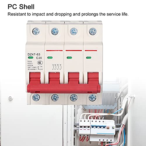 Interruttore Magnetotermico 4P 20A Magnetico Mini Interruttore Aria 4P Interruttore Automatico per Montaggio su Guida DIN per Uso Domestico 400V((20A))