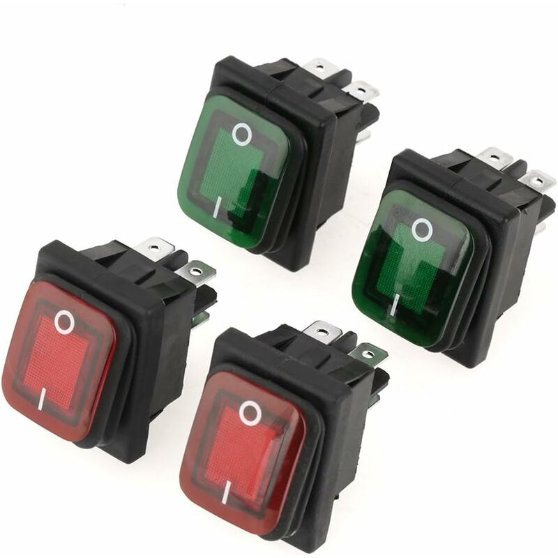 4 pin e 2 posizioni, con indicatore luminoso. L'interruttore a bilanciere è realizzato in materiale di alta qualità, con una lunga durata. Ampio campo di applicazione, interruttore eccellente per sostituire quello rotto.Questo interruttore tipo barca ha eccellenti prestazioni di tenuta, polvere e olio. Caratteristiche: Colore: rosso, verde Pin: 4 Livello di impermeabilità: IP67 Tensione nominale: 220V Peso: 70 g Il pacchetto include: 2 x Interruttore a bilanciere rosso 2 x interruttore a bilanciere verde