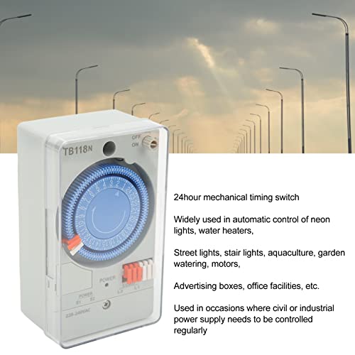 Interruttore Orario Meccanico, Timer per Luci Esterne Programmabile da 220v a 240v Timer Meccanico 24 Ore con Motore a Impulsi Sincrono Integrato per Irrigazione da Giardino