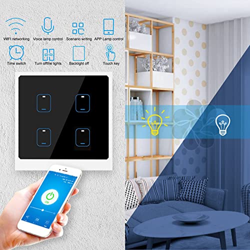 Interruttore a parete intelligente a 4 canali Interruttore a parete WiFi compatibile Alexa Google Telecomando per casa e app Google