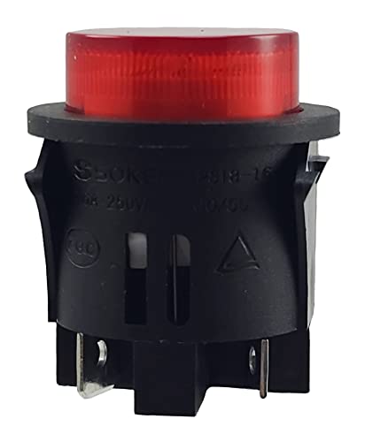 Interruttore a pressione PS18-16 da incasso ø 25 mm, 250 V, 16 A, rosso acceso, spina piatta 6,3 mm