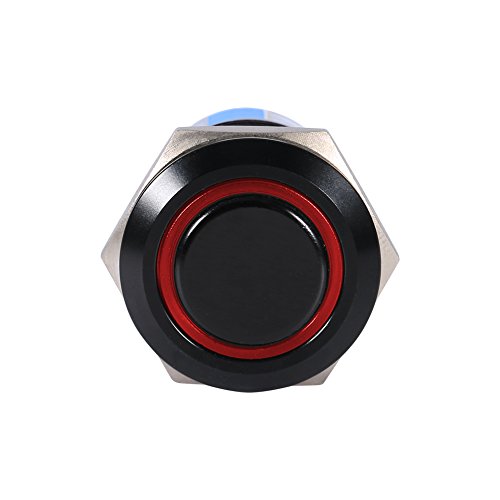 Interruttore a pulsante LED, 19 mm 12V-24V LED ON/OFF Interruttore a pulsante autobloccante nero impermeabile(Red)