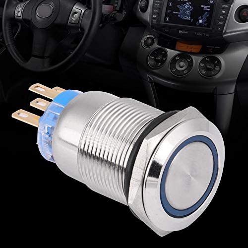 Interruttore a pulsante 19mm 12V LED Autobloccante Pulsante di accensione/spegnimento Interruttore a pulsante IP65(蓝色 LED 环形 灯)