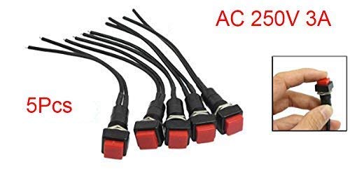 Interruttore a pulsante automatico a breve termine, 5 x 10 mm, quadrato rosso, AC 250 V, 3 A