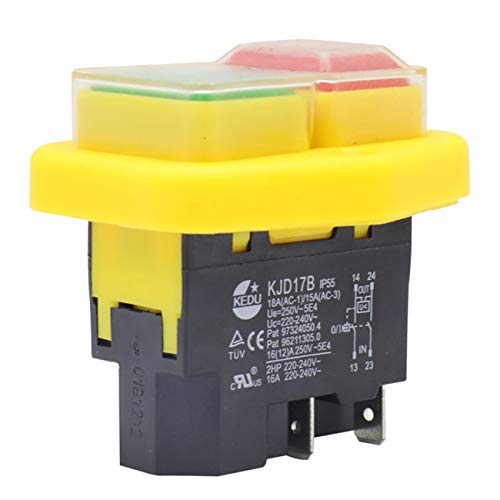 Interruttore a pulsante elettromagnetico KEDU KJD17B impermeabile 220-240 V 4 poli per utensili elettrici, giallo