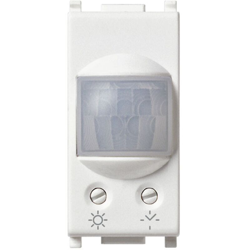 Interruttore con sensore di movimento ad infrarossi per accensione luci, soglia del sensore crepuscolare e ciclo di temporizzazione regolabili, uscita a rele' NO 6 A 230 V~, alimentazione 230 V~ 50-60 Hz, bianco