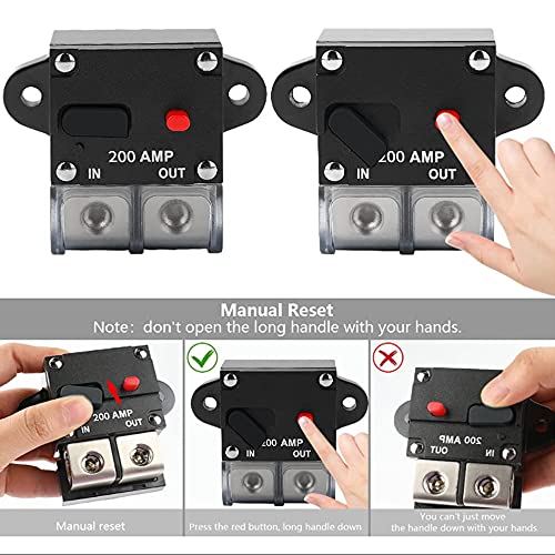 Interruttore di Ripristino del Fusibile,Interruttore di Circuito Automatico auto,DC 12V-24V Portafusibili a Ripristino Manuale Invertitore per Marino Barca Bicicletta Auto Audio Stereo nero,200A