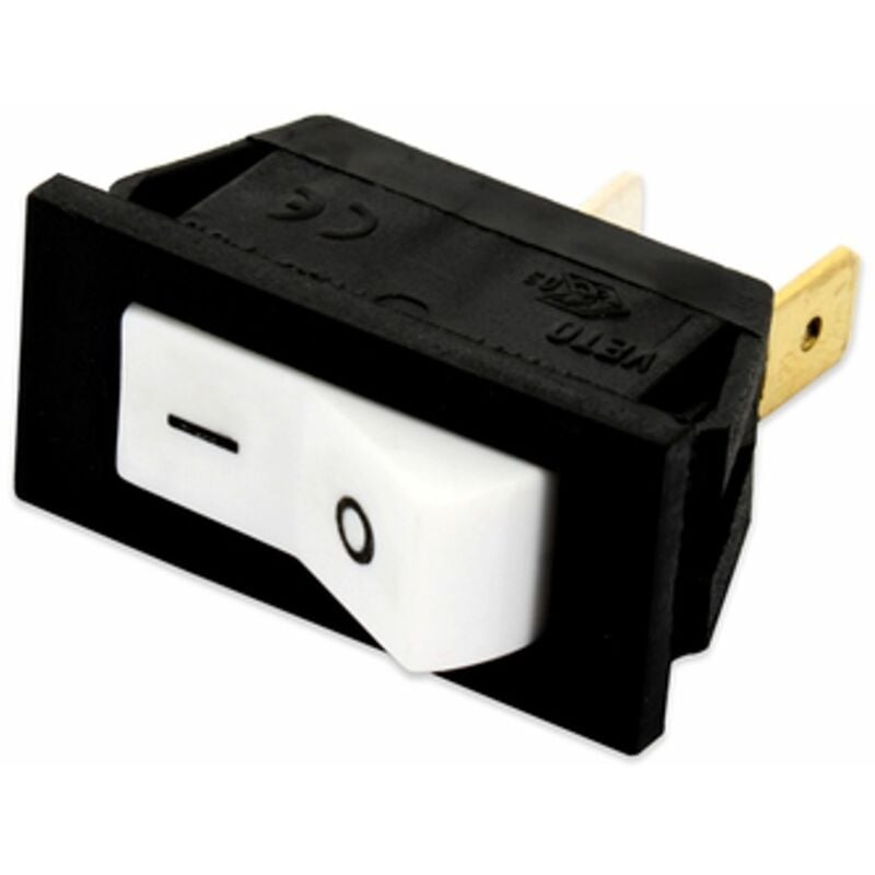 Interruttore unipolare 10A 12X27mm 2 faston con tasto di colore bianco e corpo di colore nero con simbolo 0 I - F001S
