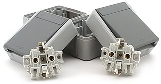 Interruttore sopra intonaco per ambienti umidi, a morsetto, a innesto, per esterni, IP44, grigio