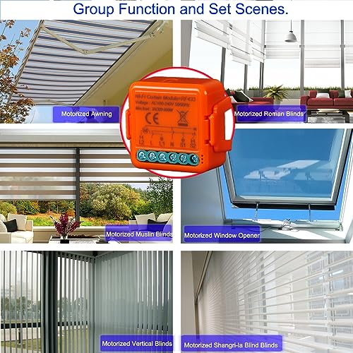 Questo wifi rf Curtain Module Permette Di Trasformare Una Semplice Tapparella Elettrica In Uno Smart Che Controllabile Tramite Lo Smartphone o i Dispostivi Vocali Come Amazon Alexa e Google Home.Questo wifi+ RF Curtain Module Funzione a 220V 3A,Massimo 600W,Ogni Modulo Si Può Controllare Solo Un Impianto Come Tapparella Elettrica,Tenda Motorizzata,Persiana Elettrica Ect.