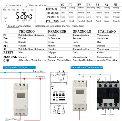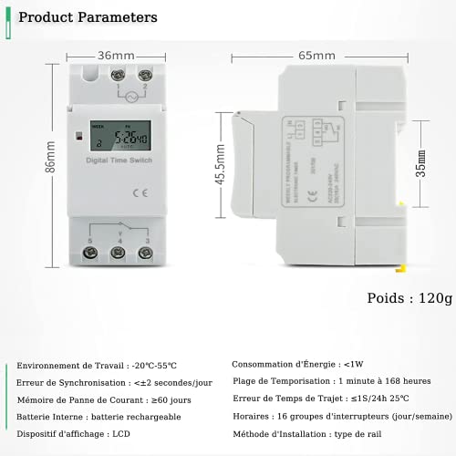Interruttore timer, Fydun display LCD 1pc Interruttore orario programmabile settimanale a relè 16on & 16off timer(AC220V)